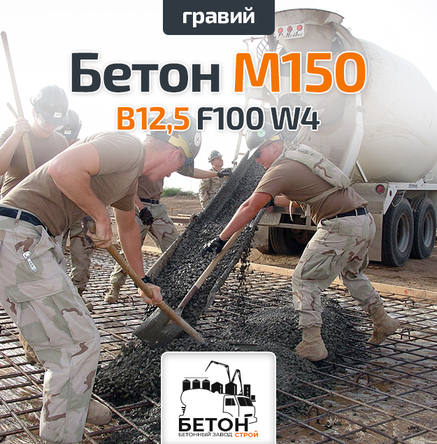 Бетон М150 B12,5 F100 W4 (Гравий)