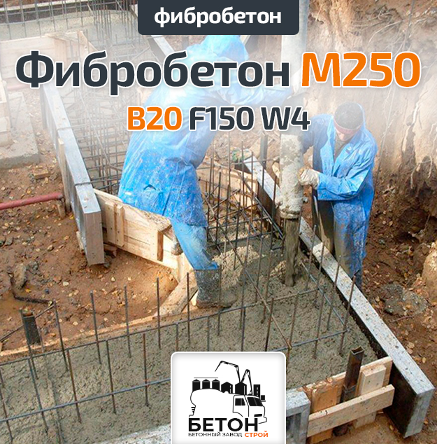 Фибробетон М250 B20 F150 W4
