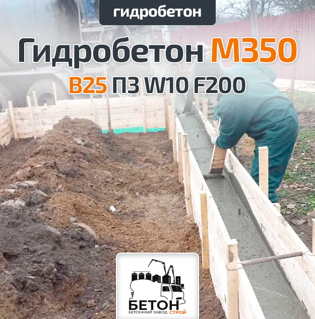Гидробетон M350 B25 П3 W10 F200