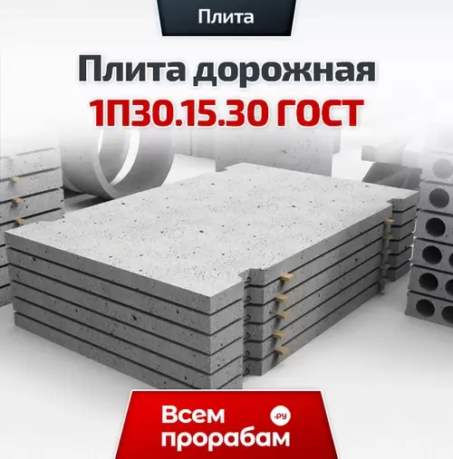 Вам необходимо купить плиту дорожную в Москве? Компания «Всем Прорабам» предлагает дорожные плиты 1П30.15.30, произведенные в полном соответствии с требованиями ГОСТ. Мы не только производим высококачественный бетон, но и обеспечиваем его оперативную доставку по Москве и Московской области.
