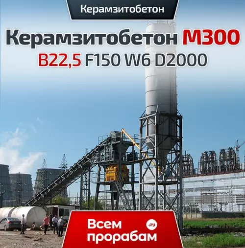 Купить Керамзитобетон М300 B22,5 F150 W6 D2000 от Производителя - «Всем Прорабам»: Производство и Доставка в Москве и Московской Области