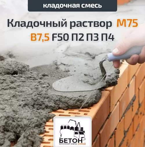 Наиболее пластичная композиция цемента, песка и наполнителей, имеющая высокую эластичность и плотную структуру. В данной смеси используется бетонный состав М75, который быстро застывает и позволяет производить кладку любых элементов в кратчайшие сроки.